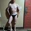 He grabbed him by the nonexistent shirt collar, lifted him slightly, and growled in his ear: