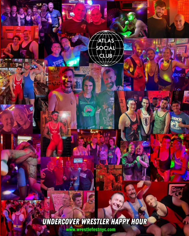 Atlas Social Club is a gay bar in Hell's Kitchen which celebrates the male physique, boxing, and wrestling. This will be the ninth month they've hosted us wrestlers.
