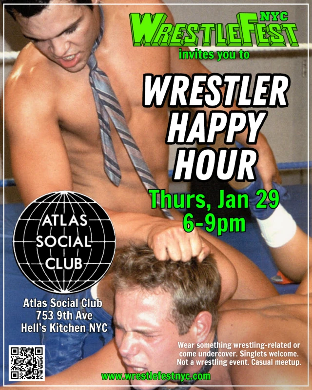 Atlas Social Club is a gay bar in Hell's Kitchen which celebrates the male physique, boxing, and wrestling. This will be the second year they've hosted us wrestlers.